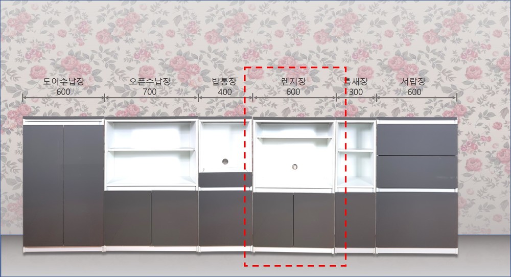 ► 상단부에 렌지공간, 하단부에 도어수납공간을 믹스한 형태