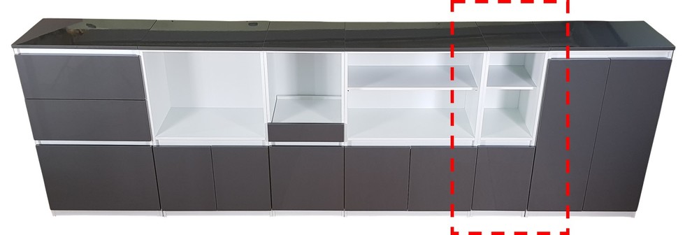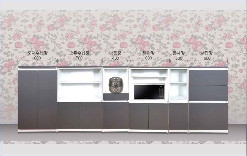 - 상부는 2단 오픈 선반,하부는 여닫이 도어적용