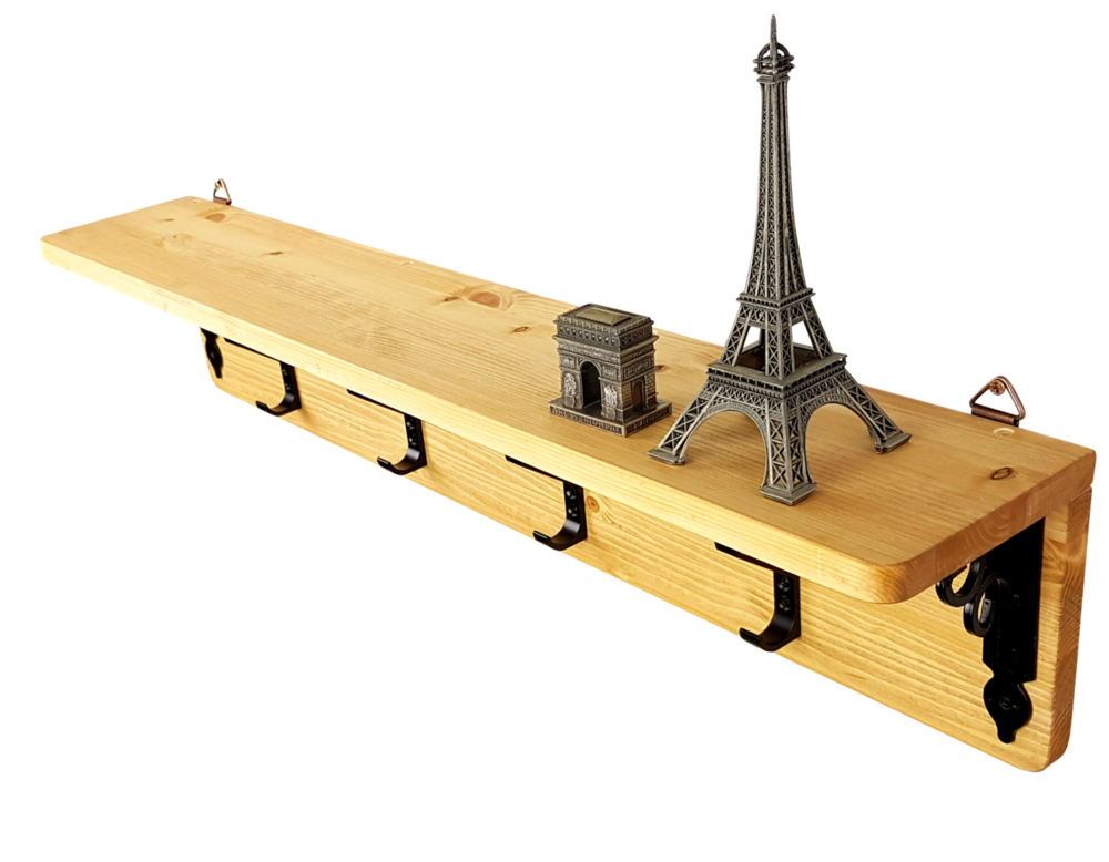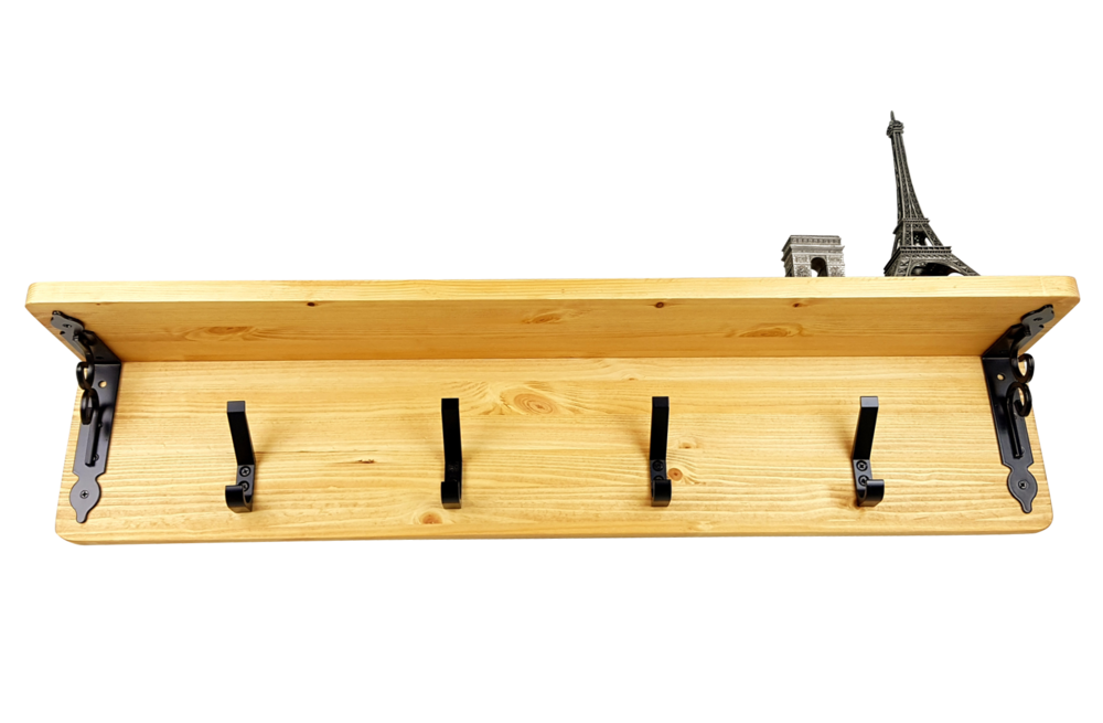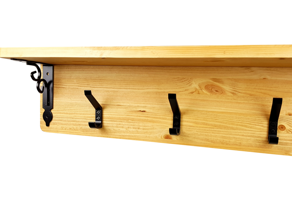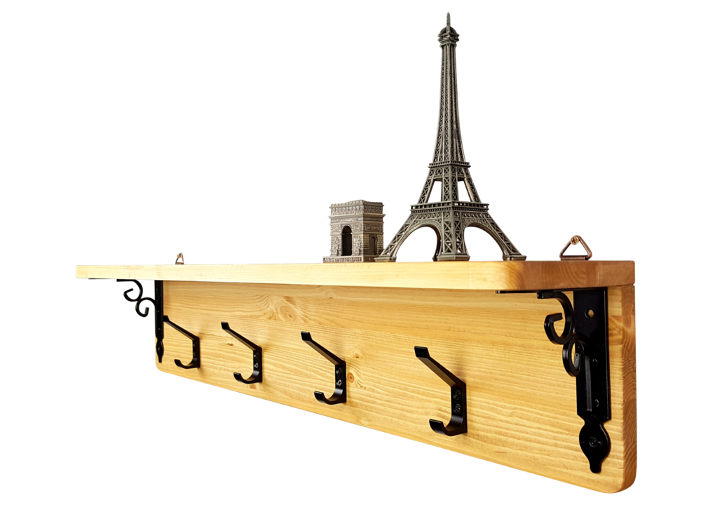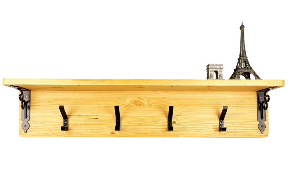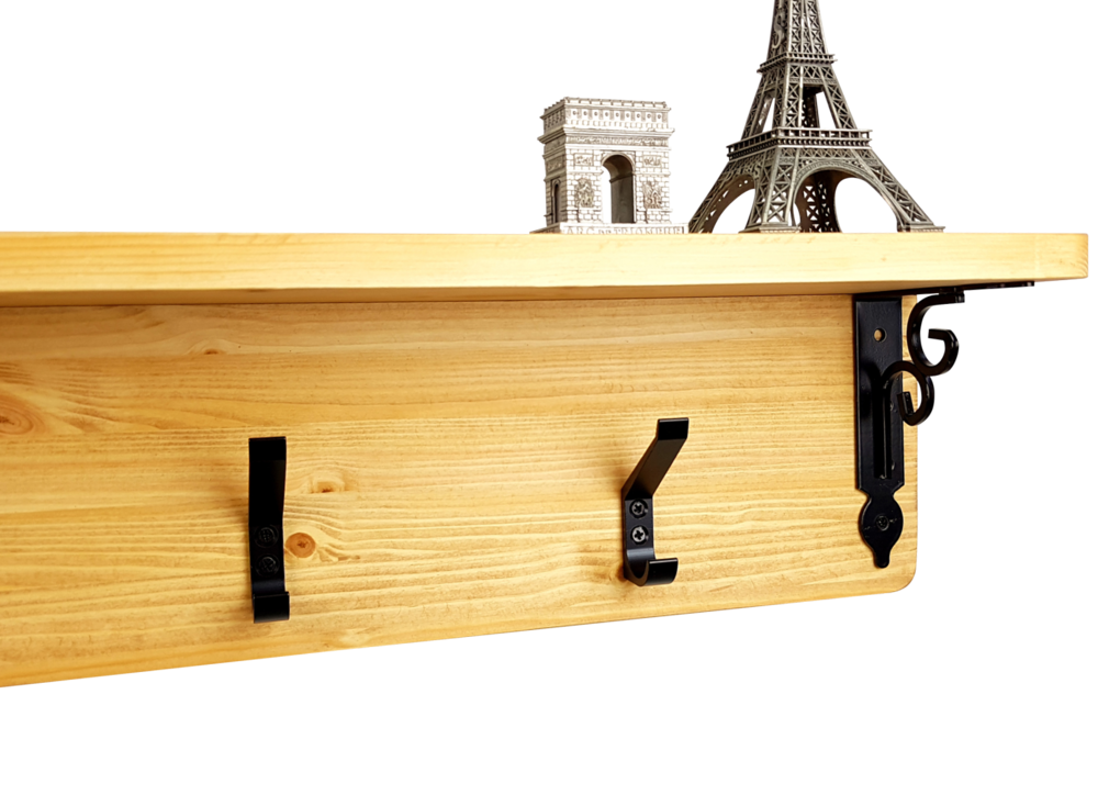 - 핀란드산 레드파인(적송)원목에 클래식느낌의 브라켓과 2단훅의 장식을 가미한 벽걸이형 선반옷걸이