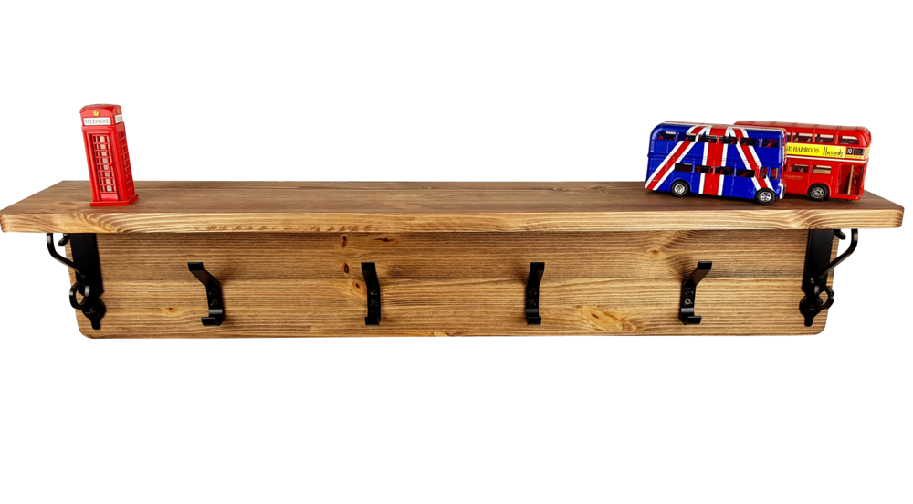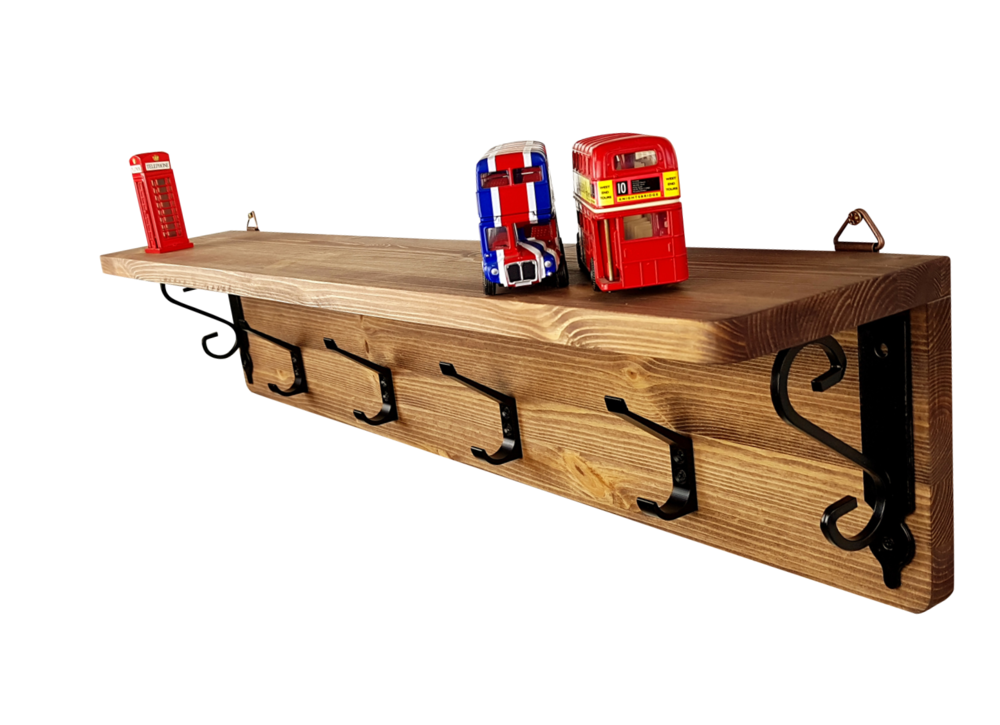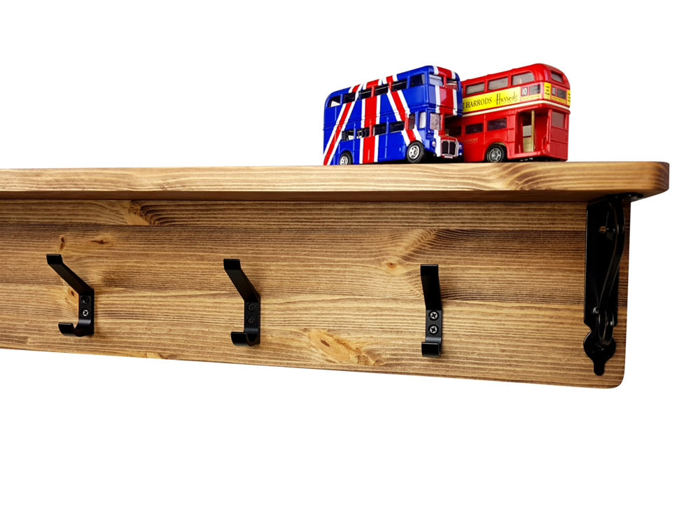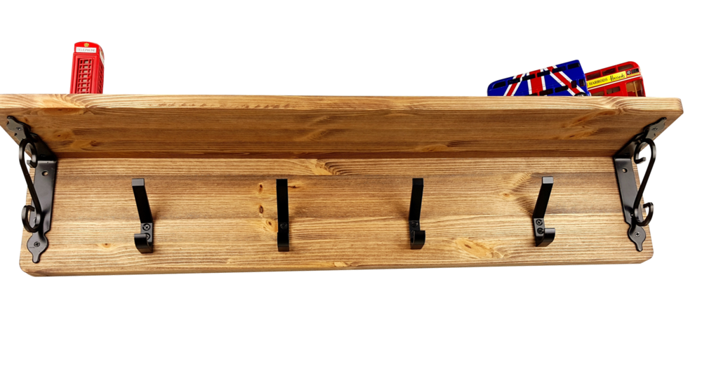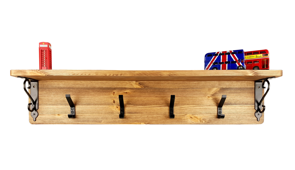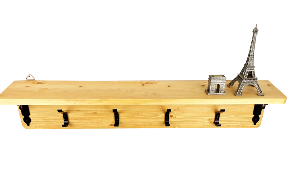 - 핀란드산 레드파인(적송)원목에 클래식느낌의 브라켓과 2단훅의 장식을 가미한 벽걸이형 선반옷걸이